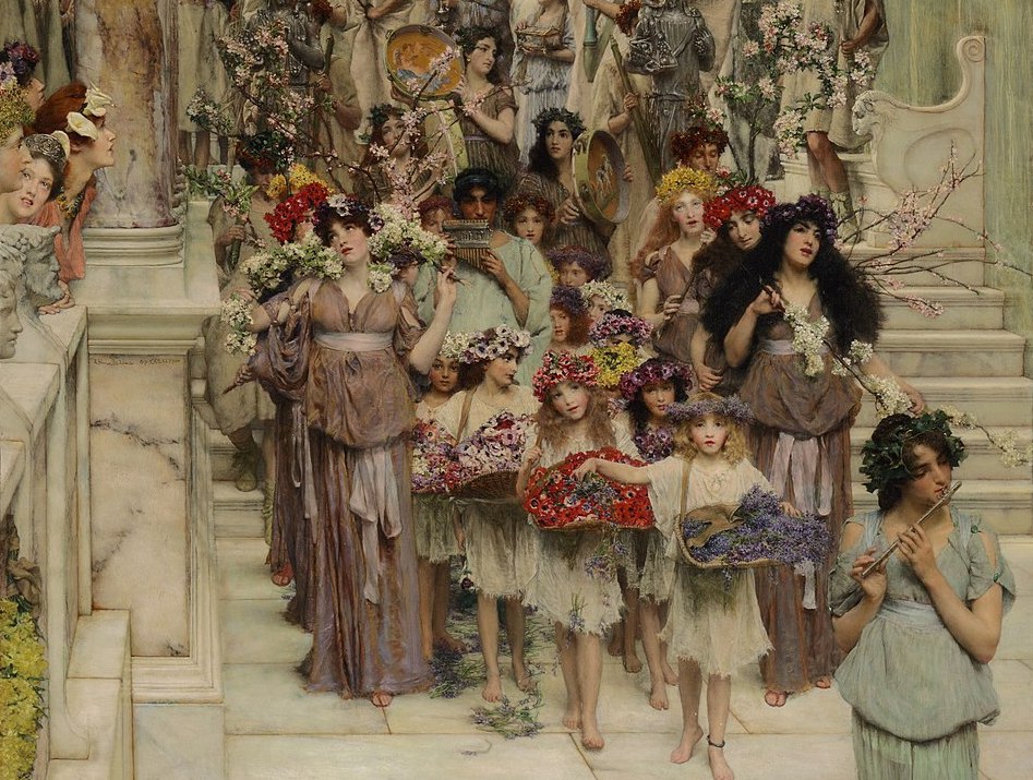 During Floralia people wore floral crowns and made offerings of milk, honey, flowers and grains; while her twin sister Fauna (goddess of animals) was honored with the letting loose of rabbits.