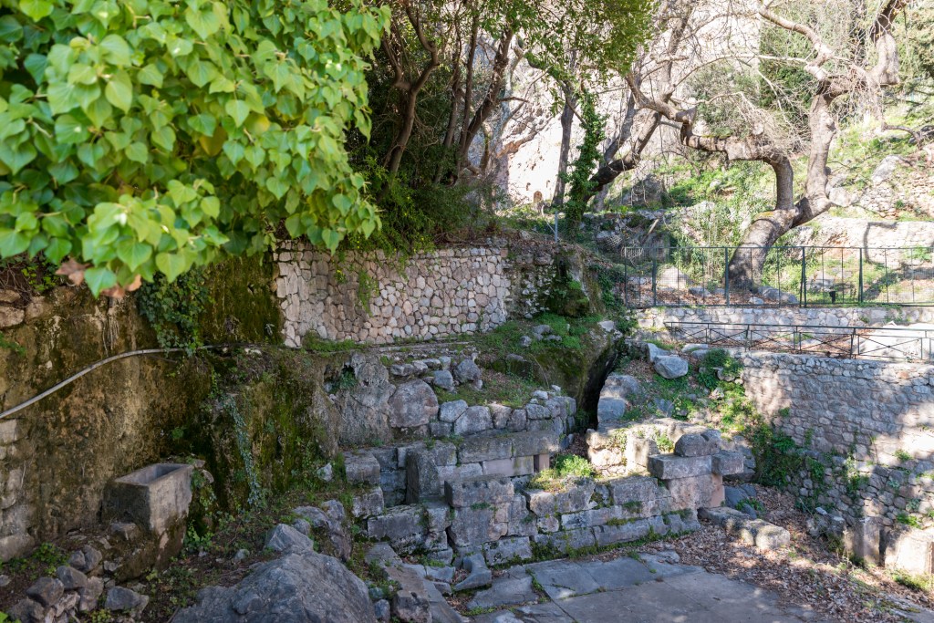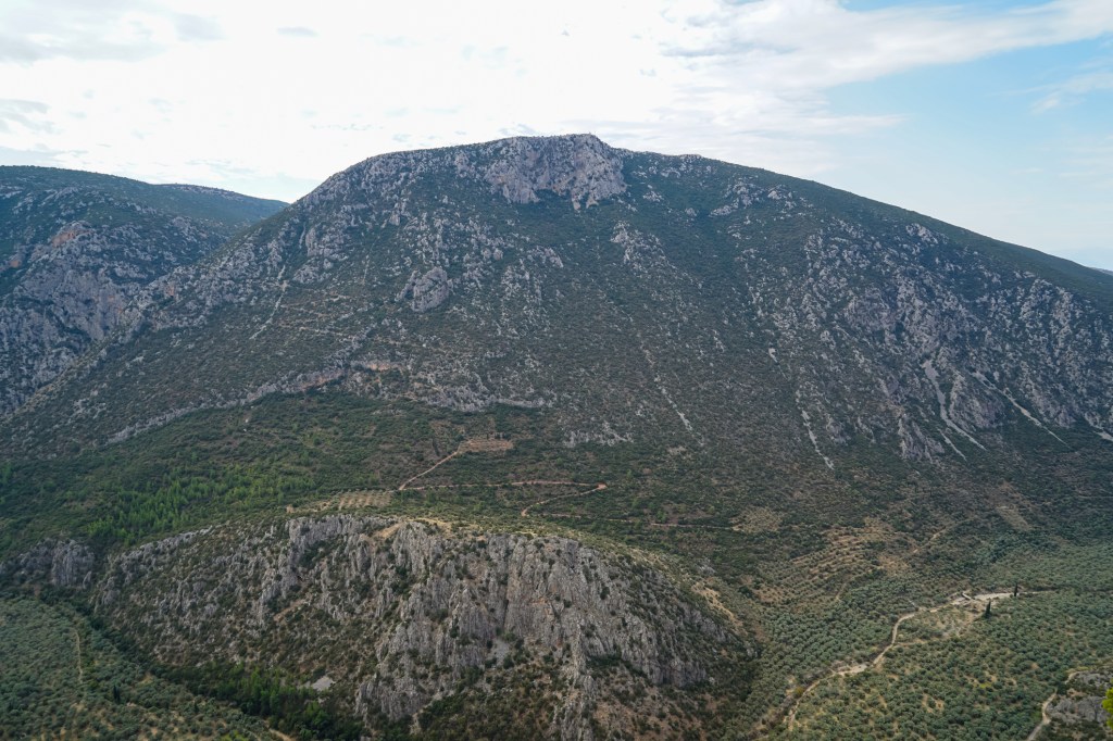 Around 4000 BCE, a rugged east-west trade route was established between the Gulf of Corinth and Northern Greece. It meandered through the Phaedriades, a pair of cliffs called “the shining ones.” Weary travelors found refuge in a grove of laurel trees near a freshwater spring and large secluded cave on the southwestern slope of Mt. Parnassus.