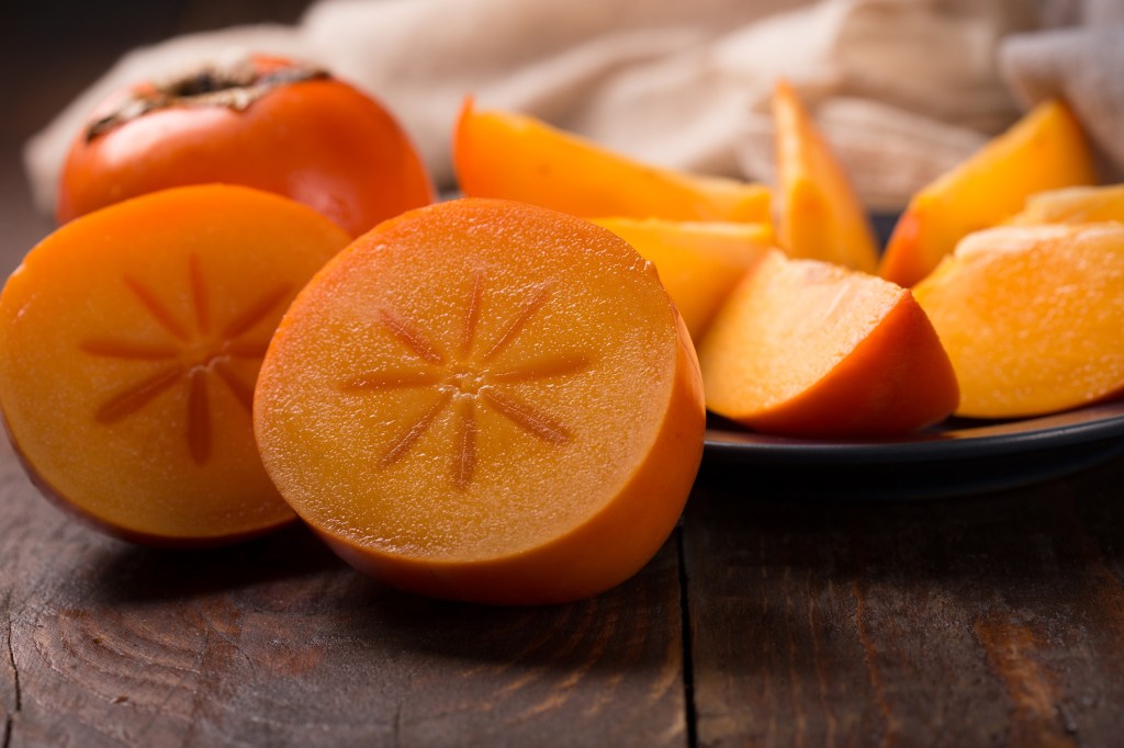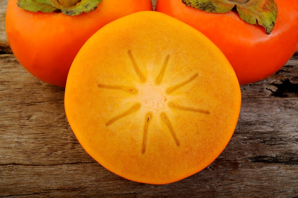 The most popular persimmons in the world (Diospyros Kaki) originated in China 10,000 years ago. It was domesticated around 200 BCE and brought to Japan and Korea in 600 CE. Asian persimmons, known as Kaki, are the national fruit of Japan. The cross-section of a Diospyros Kaki reveals an eight-pointed star or octagram. Eight is a universal sign of divine intervention and good fortune. In Buddhism, persimmons are symbolic of transformation.