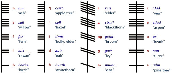 The Druids also created the Ogham or “tree alphabet” as a secret way to share the wisdom of 20 different trees. A series of slashes were carved into wooden branches or directly onto trees as markers. The yew, known as idho or idad, was associated with the letter “i”.
