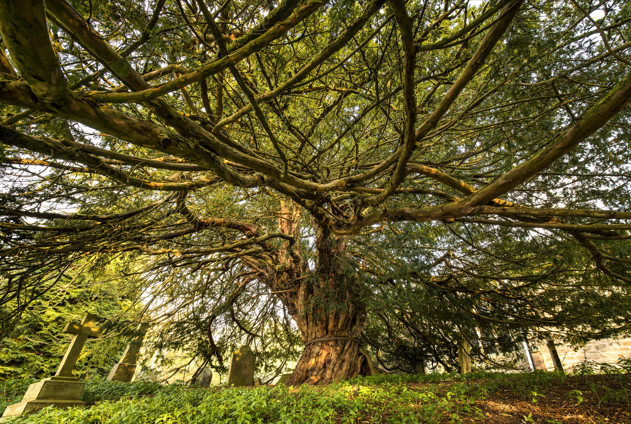The Druids saw yews as trees of eternal life. They often buried their dead under overarching branches of old yew trees, which served as portals for the souls.