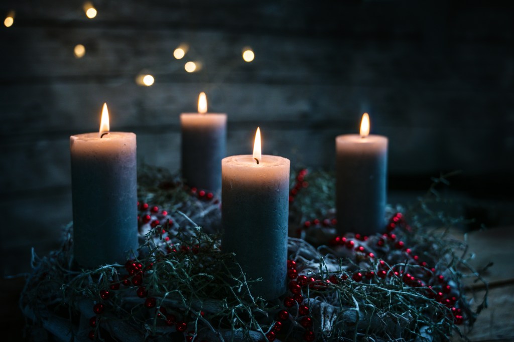 Advent wreaths were made with holly to represent the eternal nature of God. It held four candles that represented the four Sundays of Advent. Holly became known as “Christ’s Thorn”. Its prickly leaves were his crown of thorns, while the red berries were his blood.