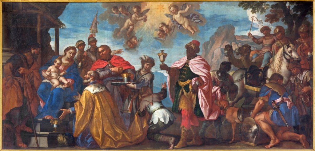 Epiphany commemorates the Adoration of the Magi, when three Wise Men or Kings, followed a guiding star to Bethlehem. They blessed the baby Jesus as the King of the Jews with gifts of gold, frankincense and myrrh. The night before Epiphany became known as the “Twelfth Night”. These twelve-days became known as “Christ-tide”.