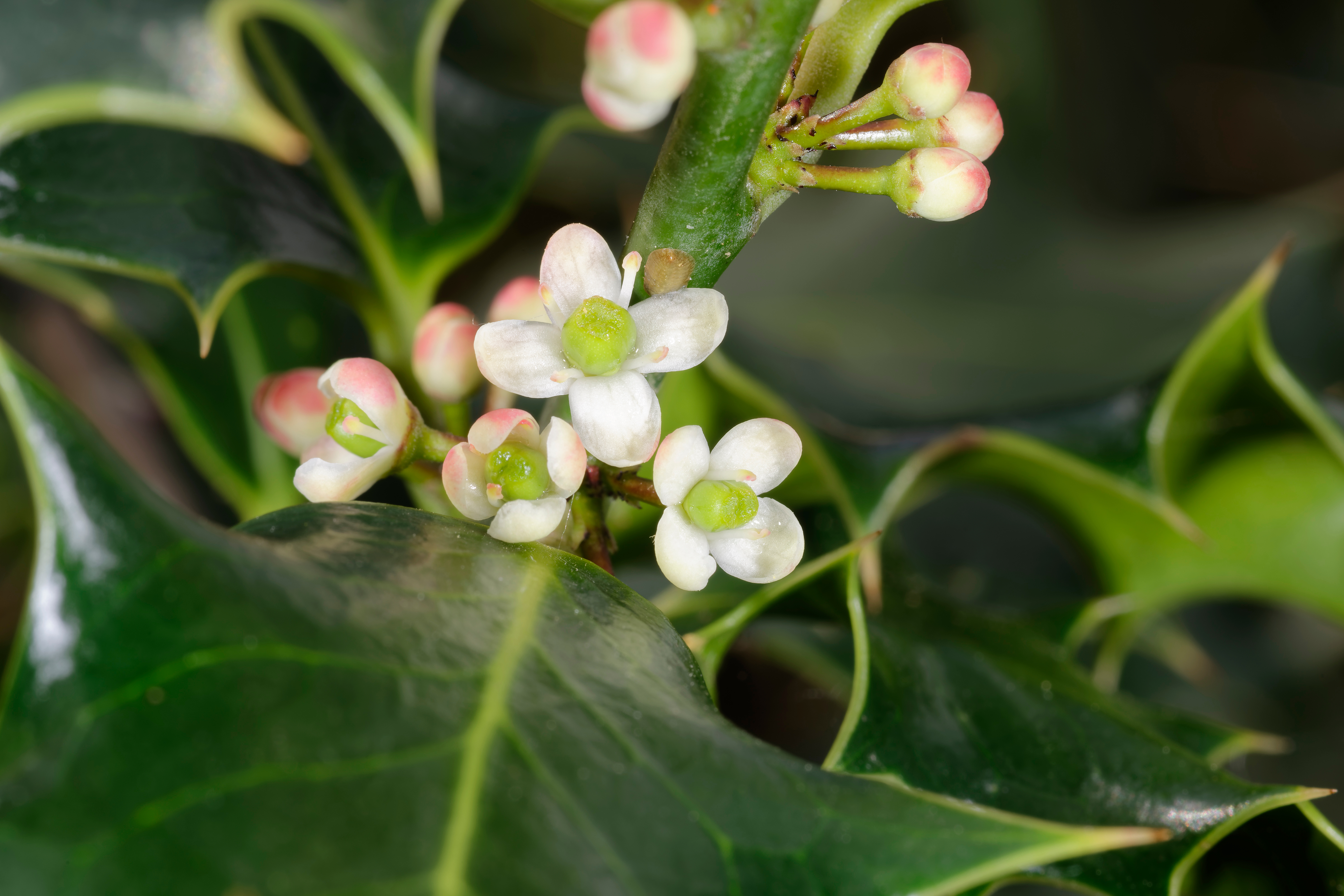 Ilex aquifolium, commonly known as European holly or English holly, is the type species within the Ilex genus. It’s native to Europe, northern Africa and parts of Asia. The genus name Ilex comes from the Latin name for evergreen oak, Quercus ilex, commonly known as holly oak or holm oak. Holly was sacred to Cronus/Saturn in Greco-Roman mythology, while holly oak was sacred to Zeus/Jupiter.