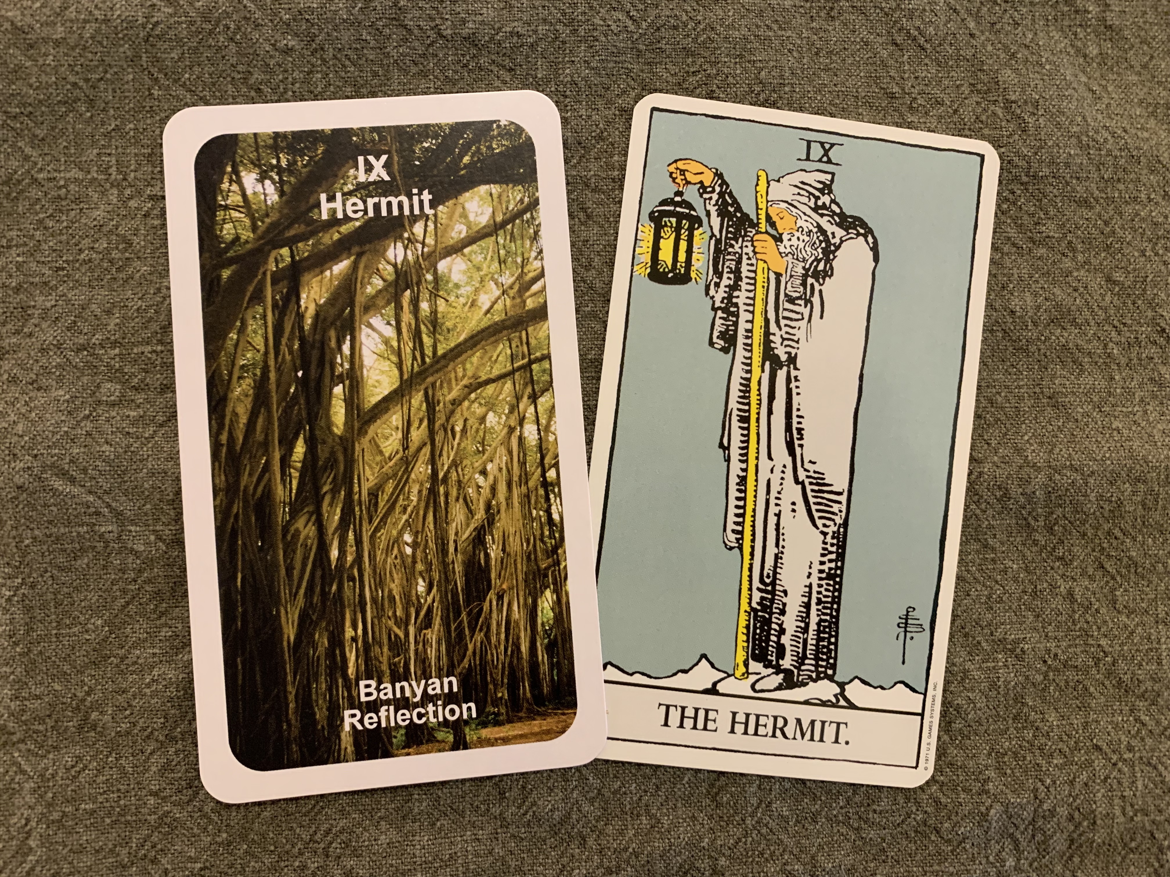In Tree Spirit Tarot, I equate the banyan tree with the Hermit card.