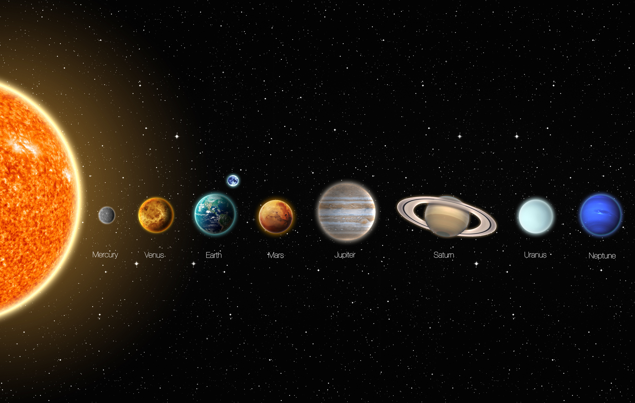Many early astronomers saw Venus as two separate stars. It was the first “star” seen at dusk as it rose from the west, and the last “star” before dawn as it set in the east. Stars generate their own light through nuclear fusion. Planets do not produce light, instead they reflect the light of the Sun, which is a star. Stars are considered “fixed” in the night sky versus the planets that wander. All the stars we see at night exist beyond our solar system. The Greek word “planetos“, meaning “one who wanders”, inspired the word planet. In ancient times the seven “wanderers” were the planets that could be seen with a naked eye, which included the Sun, Moon, Mars, Mercury, Jupiter, Venus and Saturn.