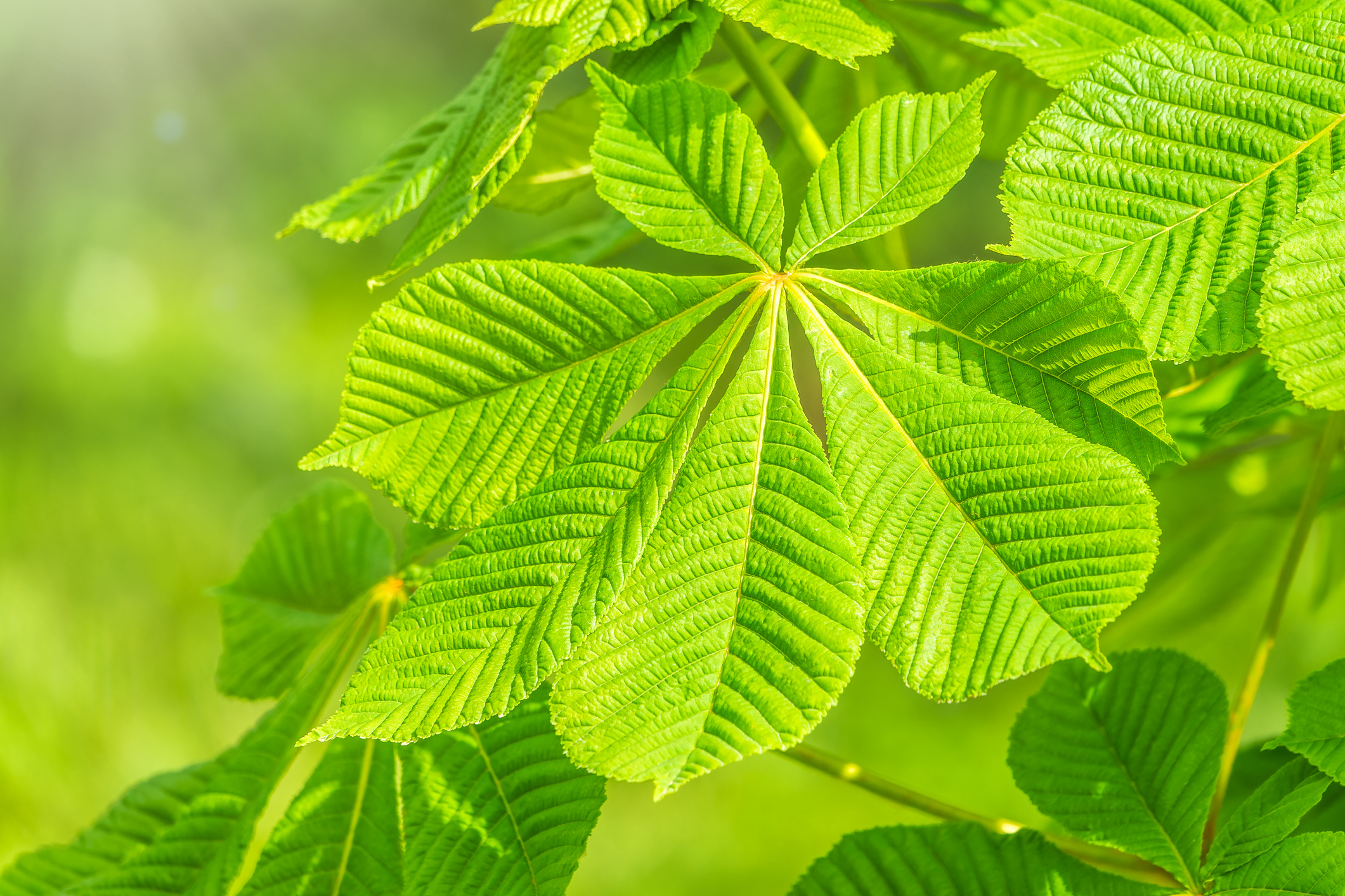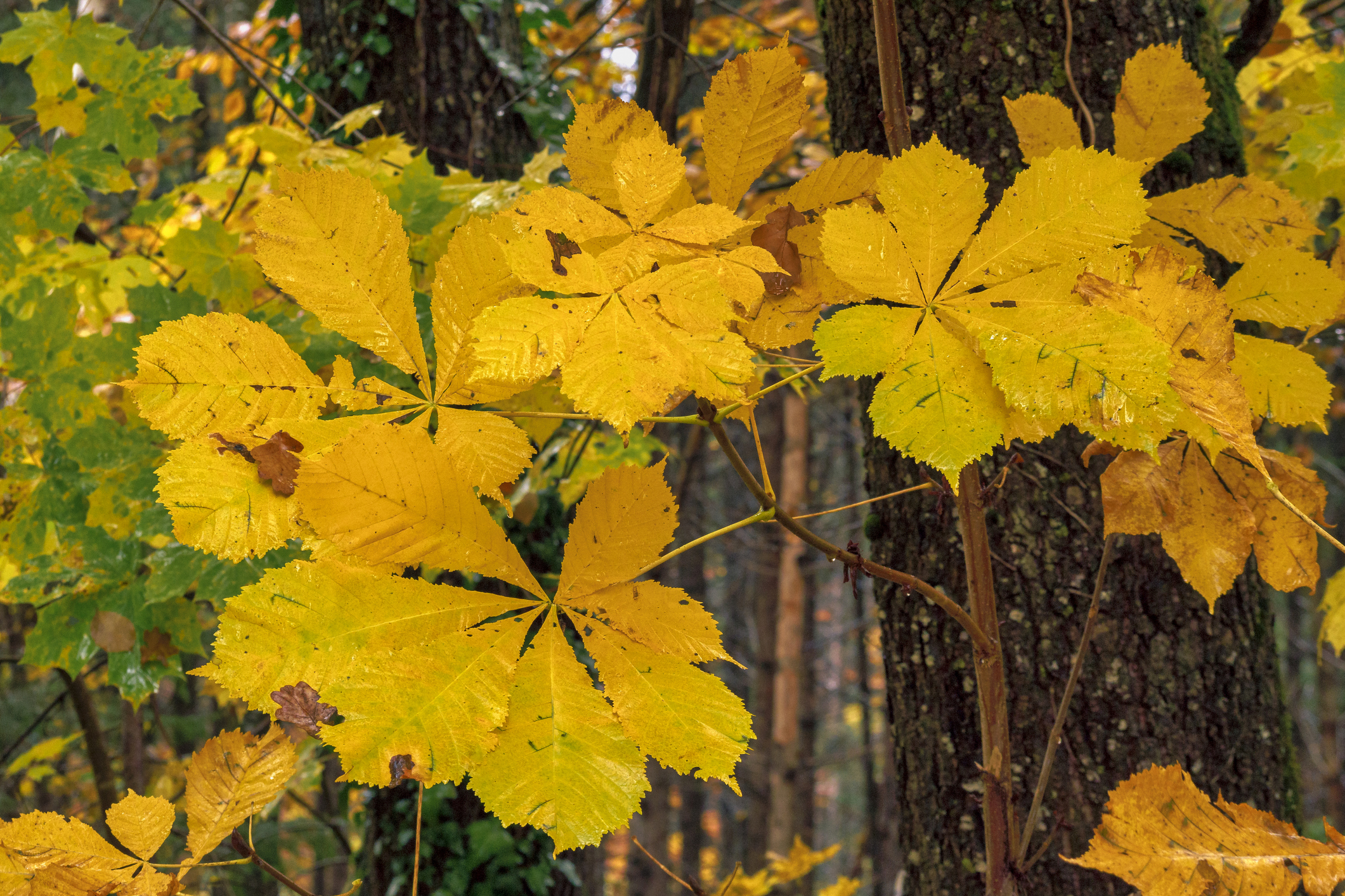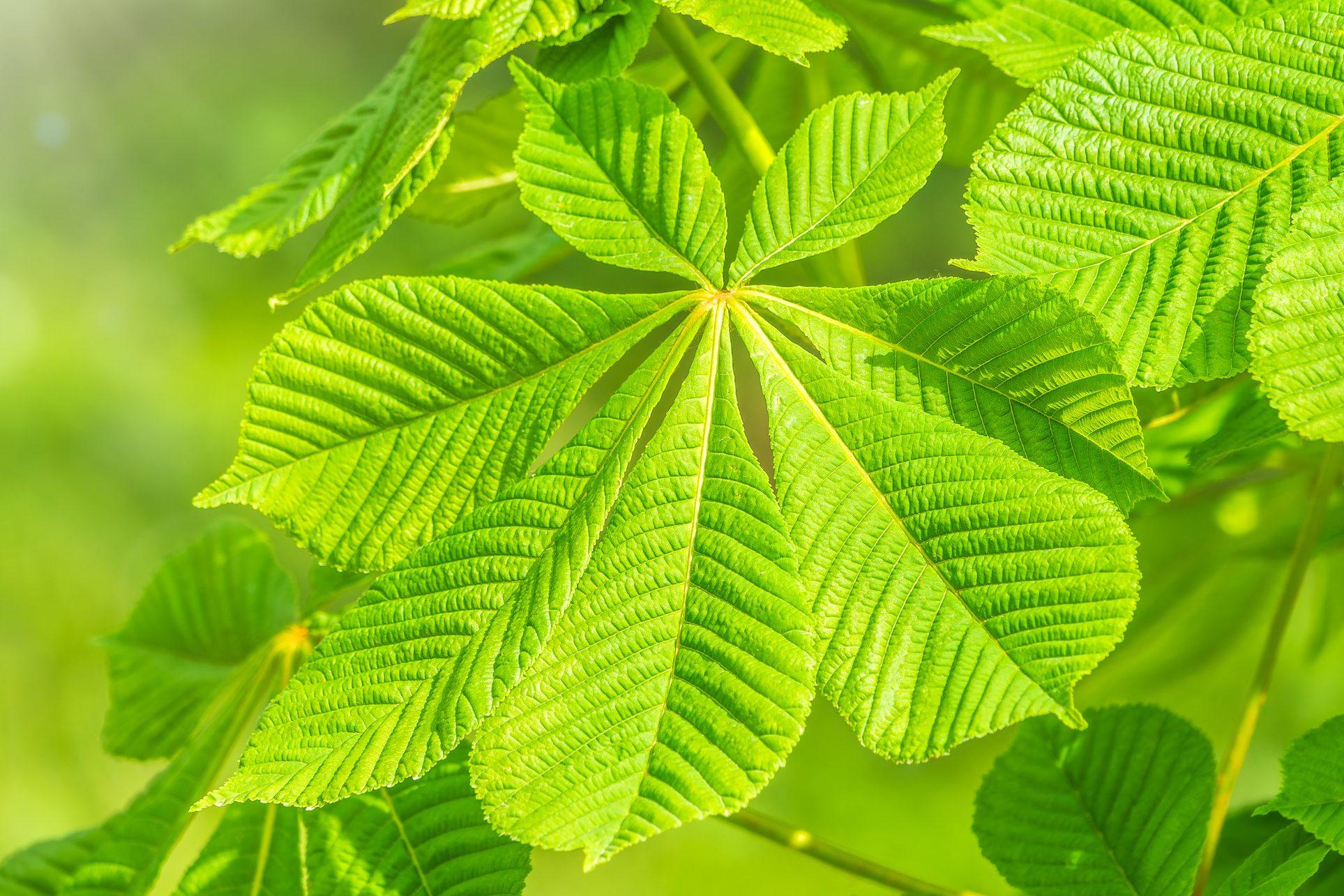 Right: Plamate leaf structure – Horse chestnut, Aesculus hippocastanum.