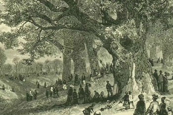 To the Algonquian speaking people of Eastern North America, these sweet chestnut trees were known as Jīnquapīm (chinquapin). A name now given to several smaller species of chestnut trees and shrubs that were more resistant to chestnut blight. They continue to grow in the wild, but they produce smaller nuts than the American chestnut.