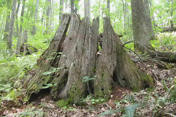 The remaining ancient stumps of American chestnut can still produce sprouts, but they die from chestnut blight before they reach a few inches in diameter.