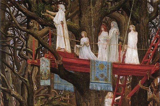 On Winter Solstice the Druids would harvest mistletoe from the barren branches of oak trees. They believed that the mistletoe’s white berries captured the Sun’s purest essence, from which they made medicinal elixirs. They dressed in white robes and carefully laid white cloth on the ground so the mistletoe would remain “pure”.