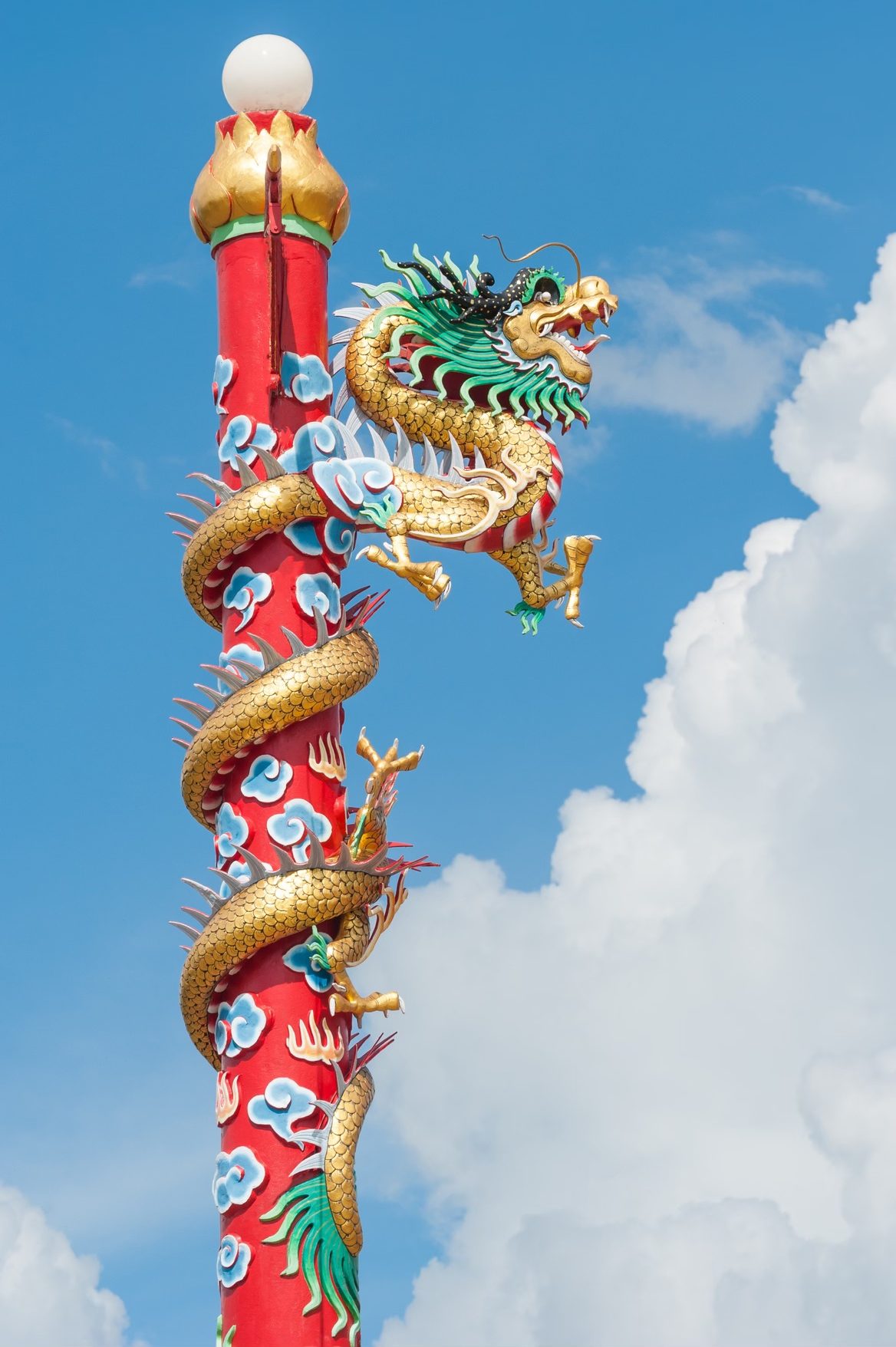 In Chinese and Taoist mythology, Huang Di was seen as the first Emperor, c. 2500 BCE. In death he ascended to the North Star riding a dragon, inspired by the constellation Draco. In his afterlife he became the Yellow Emperor (Sun) who rode a wagon (Big Dipper) around the North Star. As the Sun, he had four faces to watch over the land in all directions. The first temples were built on top of mountains to be close to the North Star.