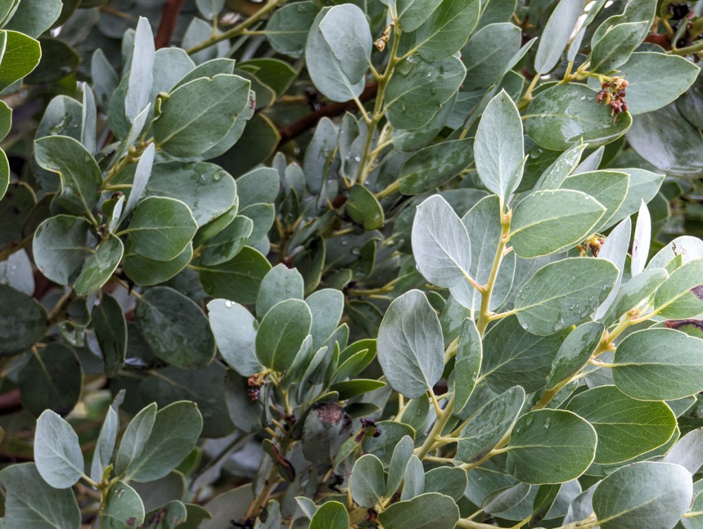 Right: Whiteleaf manzanita (Arctostaphylos viscida) leaves – San Gabriel Mountains, California