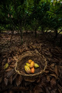 Today nearly 25 million acres are dedicated to the worldwide cultivation of cacao. Cacao trees begin to bear fruit in four or five years. Large pods that grow directly from the trunk or a large branch hold the cacao seeds. The pods are opened with a machete and laid out to “sweat” for several days. The beans are fermented and dried before they are cleaned, roasted and graded.