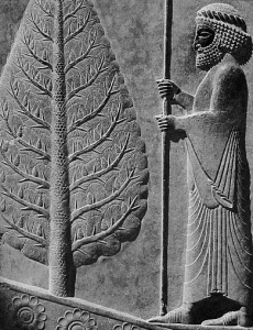 The cypress tree, Cupressus sempervirens, was seen as the tree of immortality and deathlessness to the Persian prophet Zoroaster. Zoroastrian belief was based on his vision of one diety and the cosmic strife between the forces of light/good (Ahura Mazda) and dark/evil (Angra Mainyu). Angra Mainyu was seen as the originator of death. In death, a person was judged on their deeds as they crossed a bridge between eternal darkness or eternal light.